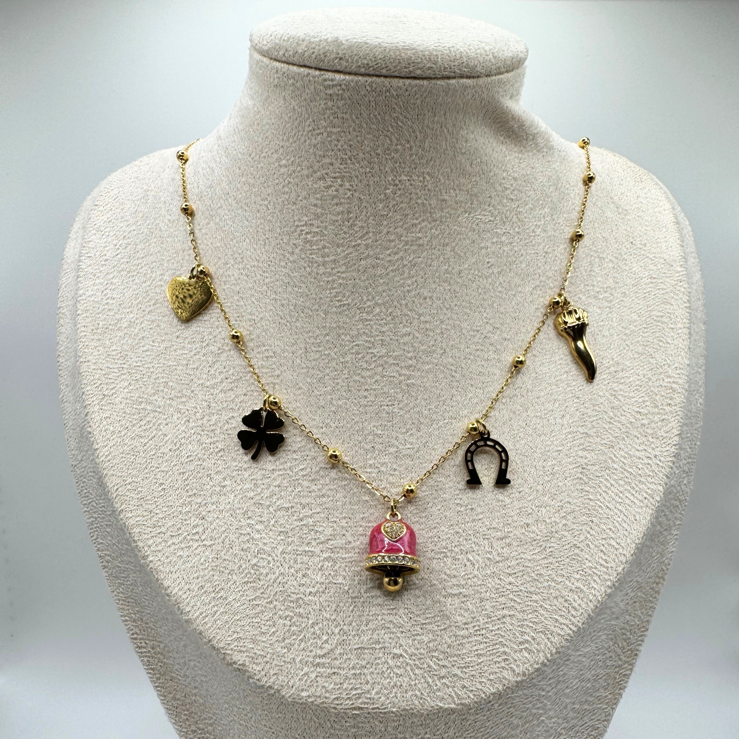 Un gioiello simbolico che racchiude in sé cinque portafortuna senza tempo.