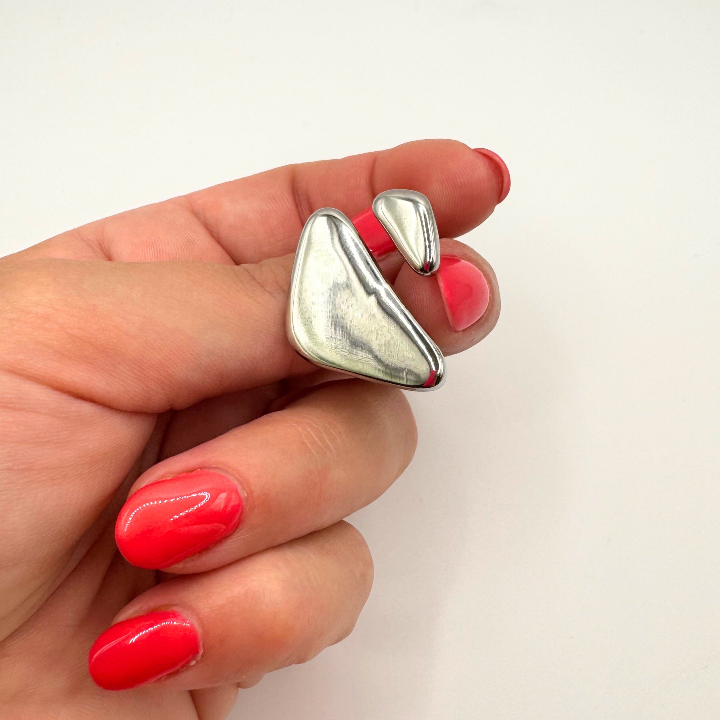 Delta è l’anello regolabile in acciaio inossidabile che conquista con la sua forma geometrica smussata: un triangolo dalle linee morbide che riflette la luce con eleganza.